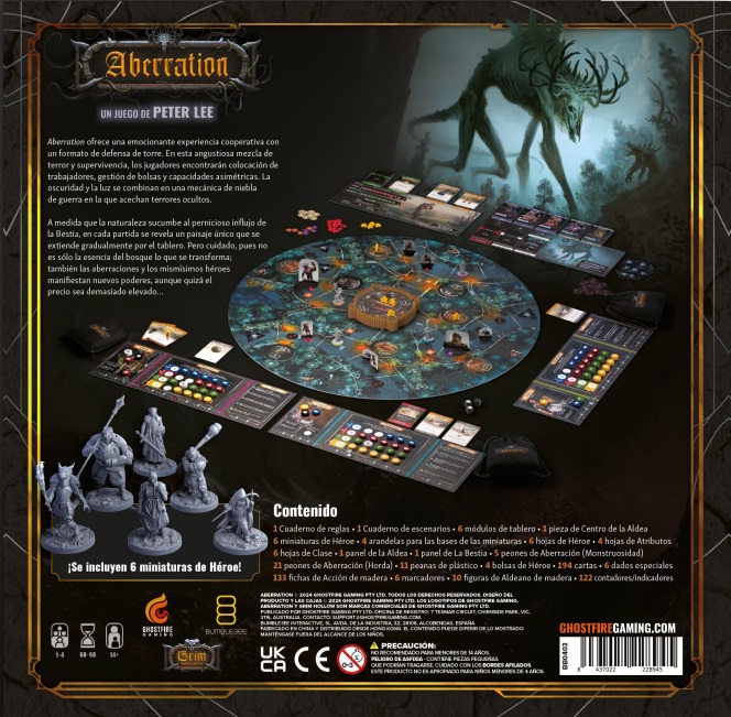 Aberration es un juego de mesa cooperativo para 1–4 jugadores en el que el grupo debe defender la aldea de Altenheim frente a monstruos corrompidos por la influencia de La Gran Bestia.