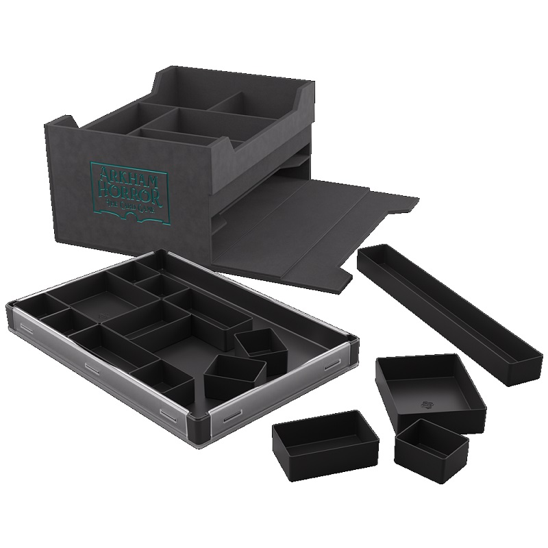 Diseñada específicamente para jugadores apasionados, ofrece amplio espacio para mazos de Investigador, más de 500 cartas enfundadas, la Bolsa de fichas y mucho más, además de un compartimento inferior para reglamentos y guías de campaña. Incluye también una edición exclusiva en color negro del Token Silo XL. Gracias al sistema convertible de Gamegenic, la cubierta magnética es extraíble y puede fijarse en la parte inferior para ahorrar espacio en la mesa. Simplifica tu preparación, optimiza tus partidas y sumérgete como nunca antes en los horrores de Arkham Horror.
