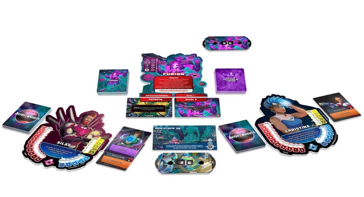 Astro Knights es un juego de mesa cooperativo de construcción de mazos en el que tu mazo no se baraja, siguiendo el sistema de juego que estableció Aeon’s End.