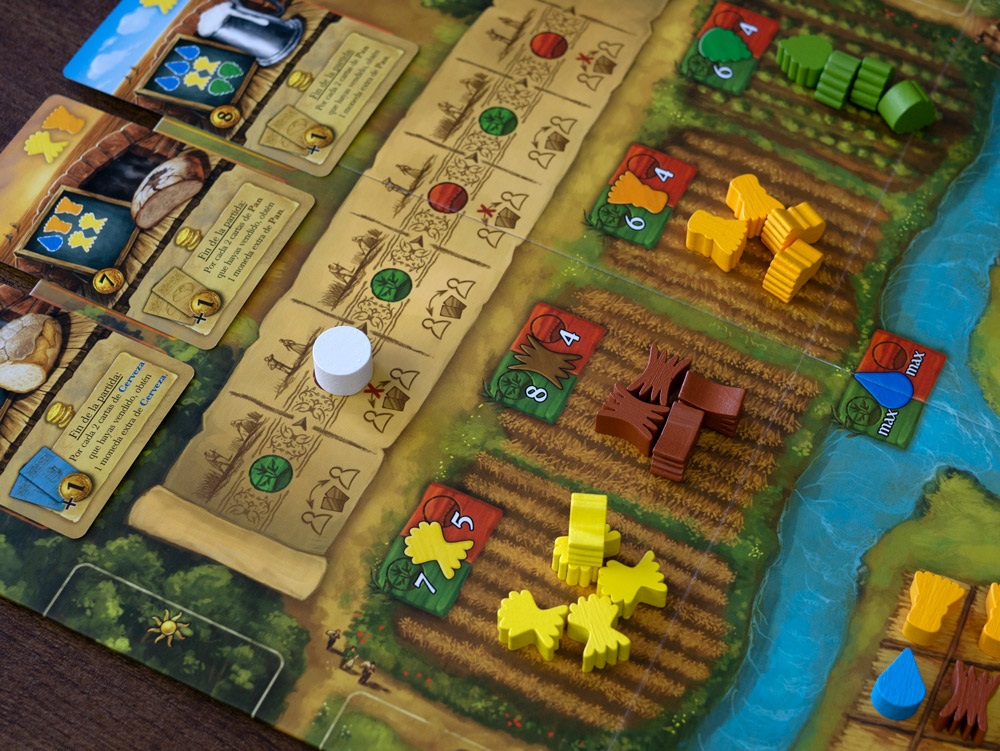 Sin embargo, para ganar, debes mantener el equilibrio entre tus productos horneados y líquidos. Porque, a partir del sexto año, sólo puntúas las monedas recogidas del tipo de bien -cerveza o pan- por el que hayas ganado menos. Gana el pueblo con mayor puntuación.