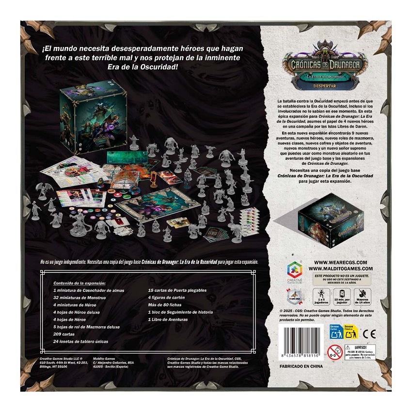 En esta nueva expansión encontrarás 9 nuevas aventuras, nuevos héroes, nuevos roles de mazmorra, nuevas clases, nuevos cofres y objetos de aventura, nuevos monstruos y un nuevo señor supremo que puedes usar como monstruo aleatorio en tus aventuras del juego base y las expansiones de Crónicas de Drunagor.