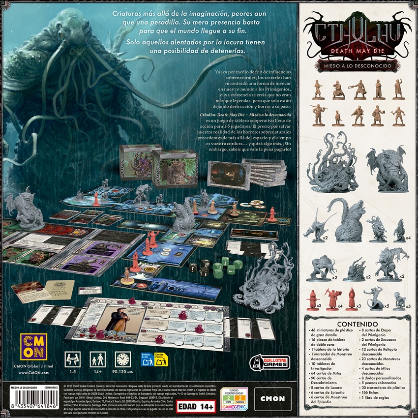 Cthulhu: Death May Die – Miedo a lo desconocido es un juego de tablero cooperativo lleno de acción para 1-5 jugadores. El precio por salvar nuestra realidad de los horrores sobrenaturales procedentes de más allá del espacio y el tiempo es vuestra cordura… y quizá algo más. ¡Sin embargo, sabéis que vale la pena pagarlo!