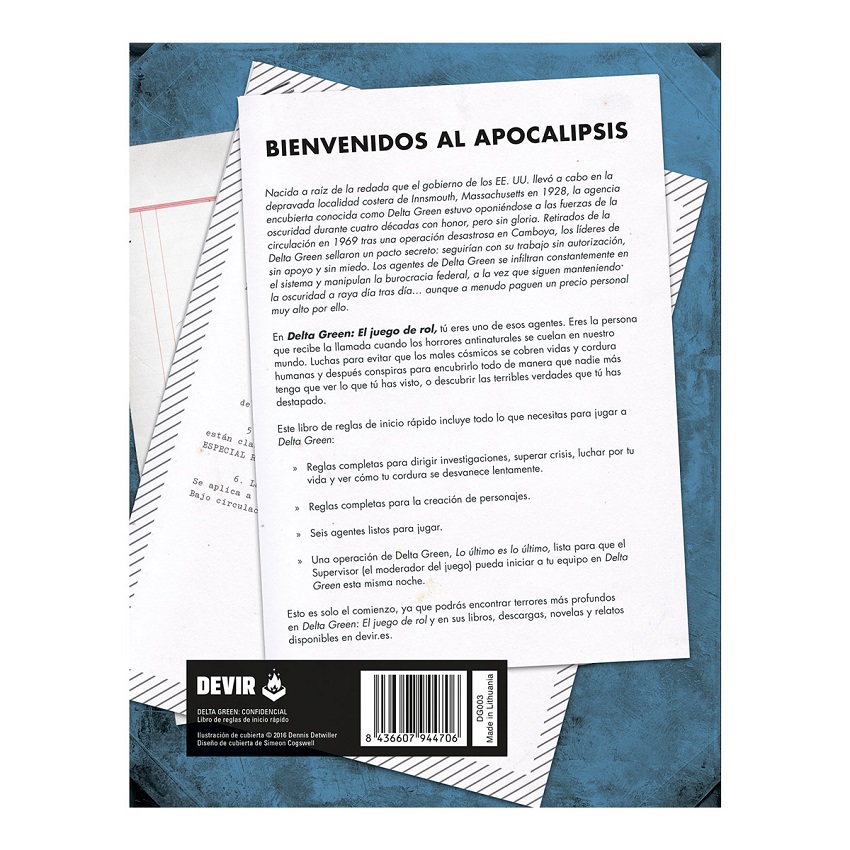 La pantalla viene acompañada por Confidencial, un libreto de 48 páginas con reglas de creación rápida, seis agentes listos para jugar y una operación de Delta Green, Lo último es lo último, lista para empezar a jugar.