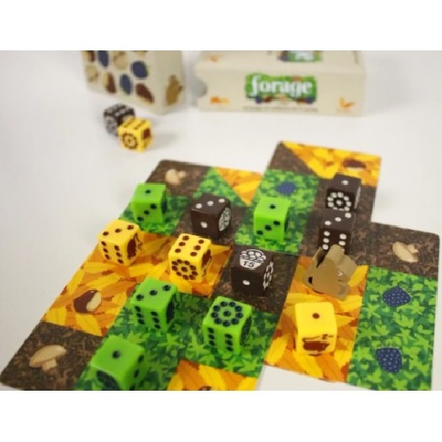 Forage es un juego en solitario de cartas y dados con partidas de una duración de unos 10 minutos, con una edad recomendada de 14 años en adelante. Incluye reglas multijugador (requiere una copia del juego por jugador).