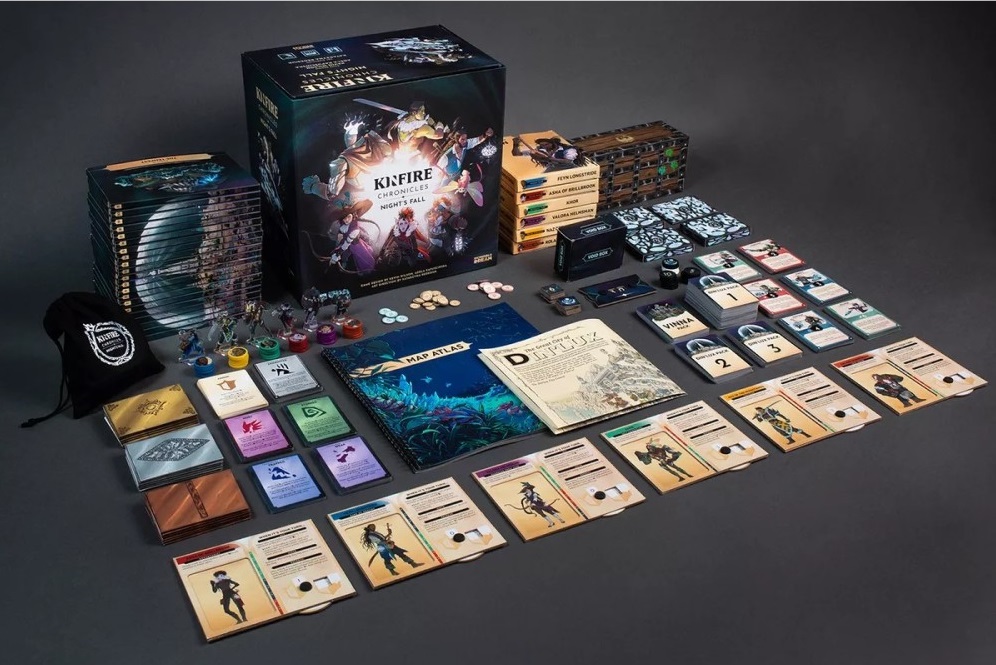 Kinfire Chronicles: Night’s Fall es un juego de mesa cooperativo de campaña que mezcla exploración narrativa, construcción de mazo y combates tácticos.