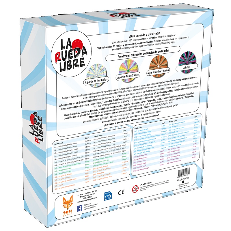 Puede ir aún más allá es sus discusiones y poner una atmósfera real durante sus tardes con estas 60 ruedas y los 10 mini juegos independientes, esenciales para momentos entretenidos, divertidos, impredecibles y amigables con familiares o amigos.