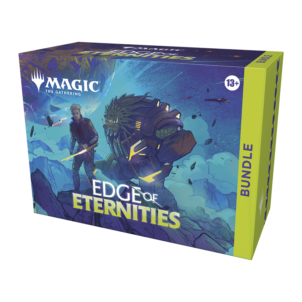 • CONTENIDO DEL BUNDLE: 9 sobres de juego de MTG de El Confín de la Eternidad, 1 carta foil tradicional con arte alternativo, 30 cartas de tierra (15 foil, 15 no foil), 1 contador de vidas Spindown, 1 caja guardacartas y 2 tarjetas de referencia