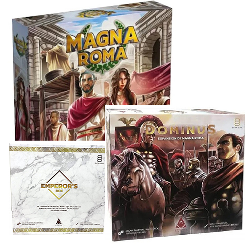 Pack que incluye el juego base de MAGNA ROMA y las expansiones Dominus y la Emperor’s Box con miniaturas de alta calidad.