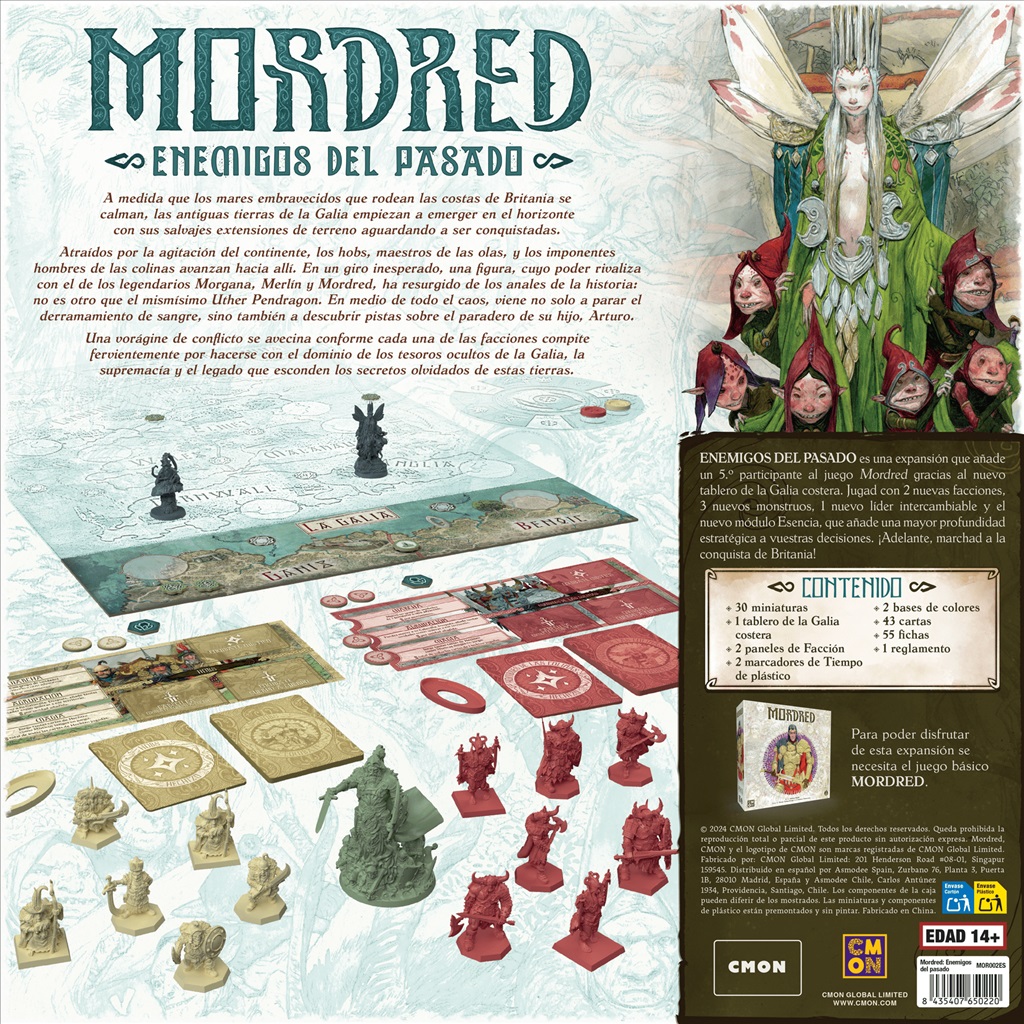 ENEMIGOS DEL PASADO es una expansión que añade un 5.º participante al juego Mordred gracias al nuevo tablero de la Galia costera. Jugad con 2 nuevas facciones, 3 nuevos monstruos, 1 nuevo líder intercambiable y el nuevo módulo Esencia, que añade una mayor profundidad estratégica a vuestras decisiones. ¡Adelante, marchad a la conquista de Britania!