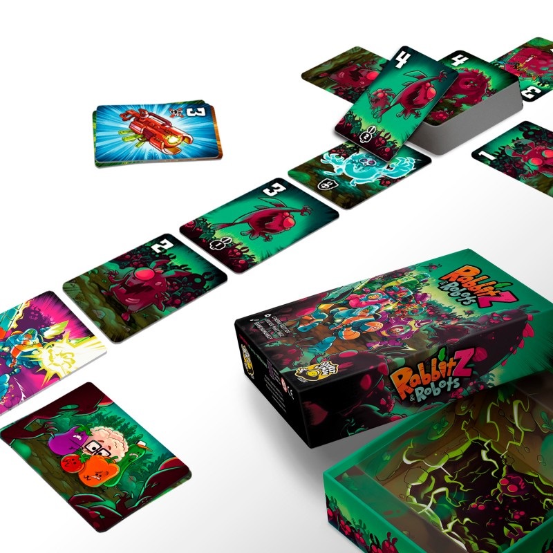 RabbitZ & Robots es un juego de Lorena Gestido y Javier Martínez e ilustrado por Bambinomonkey. Si al final de la invasión eres el jugador con menos puntos negativos en su Huerto, serás el ganador.
